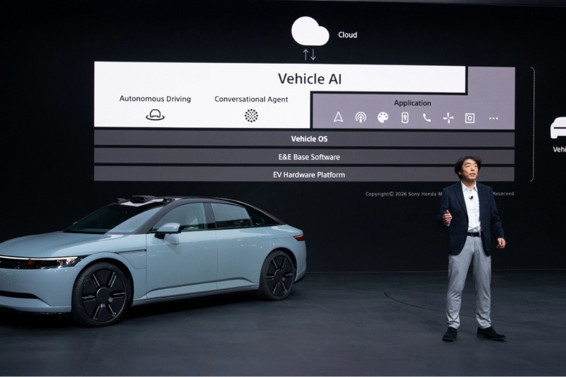 Cùng xuất hiện tại CES 2026 là Afeela 1, mẫu sedan điện đầu tiên của liên doanh Sony và Honda. Xe dự kiến bắt đầu giao khách tại California trong năm 2026, giá khởi điểm khoảng 89.900 USD, sau đó mở rộng sang Arizona vào năm 2027 và thị trường Nhật Bản trong nửa đầu năm 2027.
