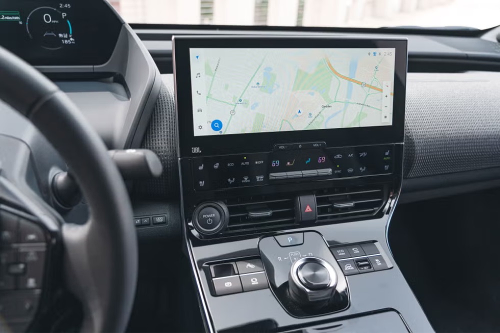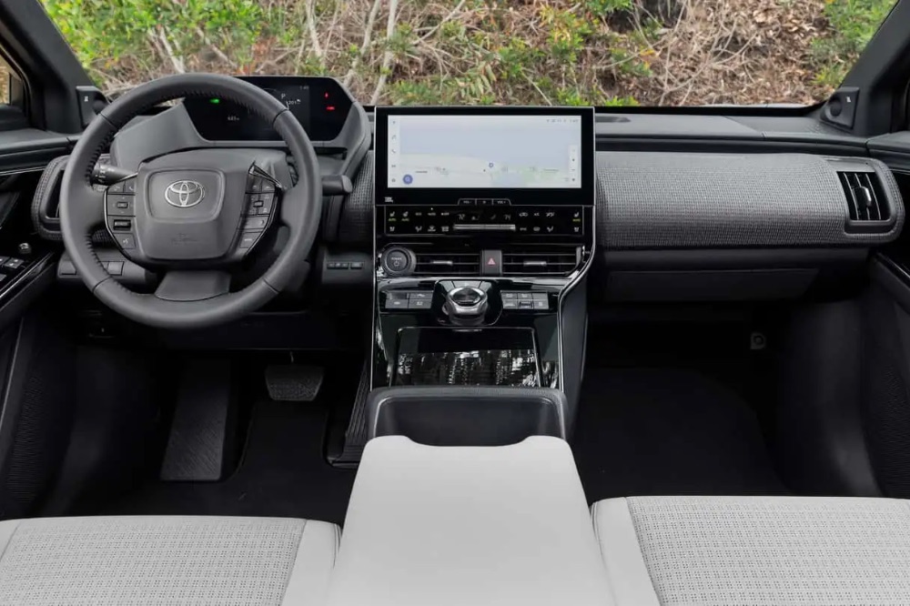 Bên trong khoang lái, Toyota bZ4X 2025 mang đến không gian hiện đại và đầy tiện nghi. Nổi bật là màn hình giải trí trung tâm 12.3 inch, hỗ trợ kết nối thông minh và có thể điều khiển nhiều chức năng qua ứng dụng Toyota, mang lại trải nghiệm liền mạch cho người dùng.