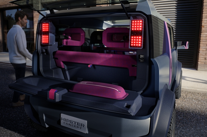 Với chiều dài chỉ 3 mét, rộng 1,55 mét và cao 1,53 mét, mẫu concept vẫn cung cấp 4 chỗ ngồi thật cùng khoang hành lý linh hoạt từ 70 đến 500 lít. Trọng lượng tổng thể của Hipster nhẹ hơn 20% so với Dacia Spring, chỉ dưới 800 kg với mục đích tiết kiệm năng lượng nguyên vật liệu và giảm phát thải trong suốt vòng đời xe. Theo Dacia, mục tiêu là giảm một nửa dấu chân carbon so với các xe điện hiện nay.