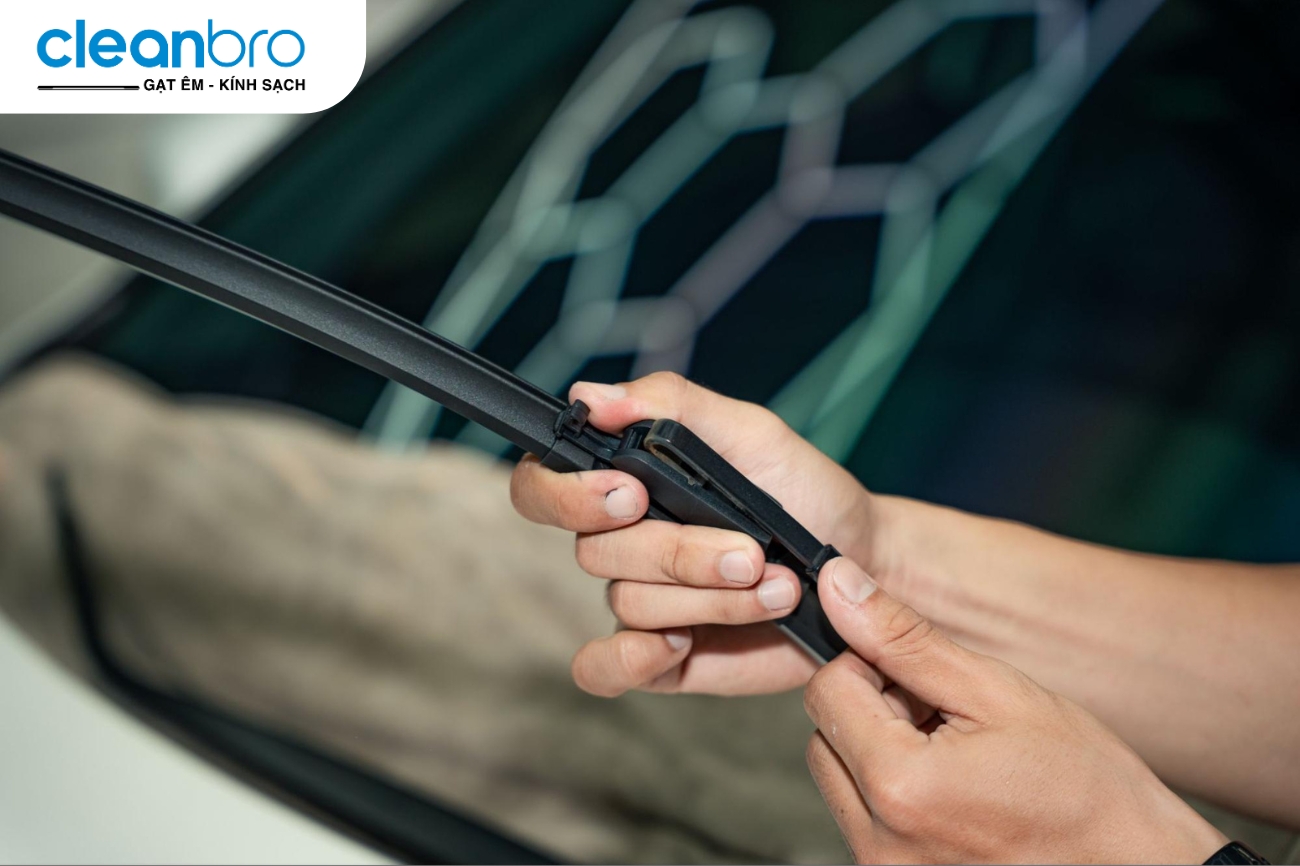 Lưu ý: Nhớ rút lớp vỏ bảo vệ lưỡi gạt trên gạt mưa Cleanbro ra.