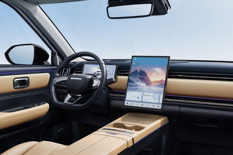 Trung tâm của khoang lái là màn hình cảm ứng 14.8 inch, hỗ trợ Apple CarPlay & Android Auto, mang đến trải nghiệm điều khiển trực quan và hiện đại. Bên cạnh đó, cần số đặt phía sau vô lăng là một điểm sáng trong thiết kế, giúp giải phóng không gian khu vực điều khiển trung tâm và tạo cảm giác thoáng đãng hơn cho người dùng.