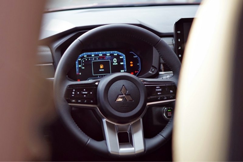 Khoang lái Xpander 2025 mang lại cảm giác hiện đại hơn nhờ cụm đồng hồ kỹ thuật số 8 inch thay thế loại analog 4,2 inch. Màn hình trung tâm tăng từ 9 inch lên 10 inch, hỗ trợ Apple CarPlay và Android Auto không dây.